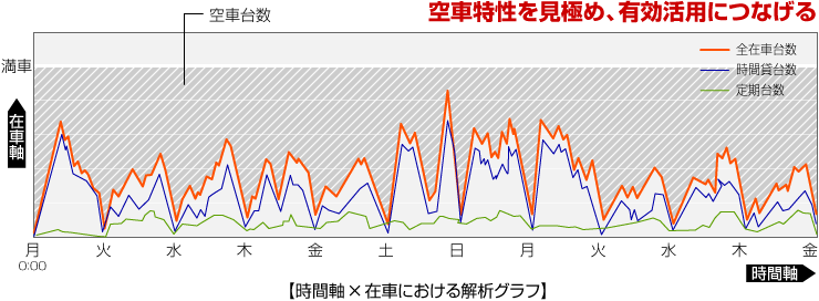 時間と空間を有効活用するためには、在車時間と空車台数を正確に把握することが必要です。Dr.パーキングは、現状の利用状況だけでなく、施設の特性や運営方法の特性を調査・診断した上、周辺駐車場市場も把握し、総合的・立体的にスペース有効活用のための方法を組み立てていきます。